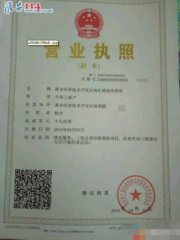 淮安百姓網(wǎng)關(guān)鍵詞:淮安開鎖,楊氏開鎖、換鎖、修鎖,工商注冊,公安備案