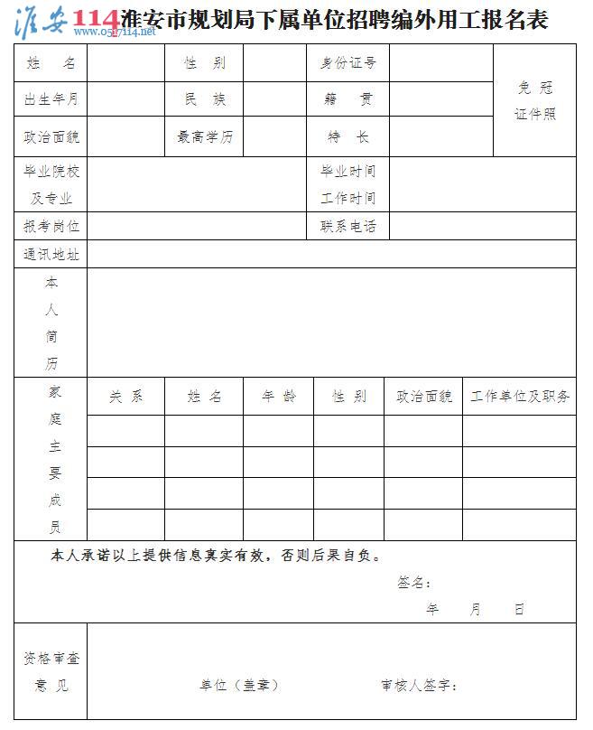 附件:淮安市規(guī)劃局下屬單位招聘編外用工報(bào)名表