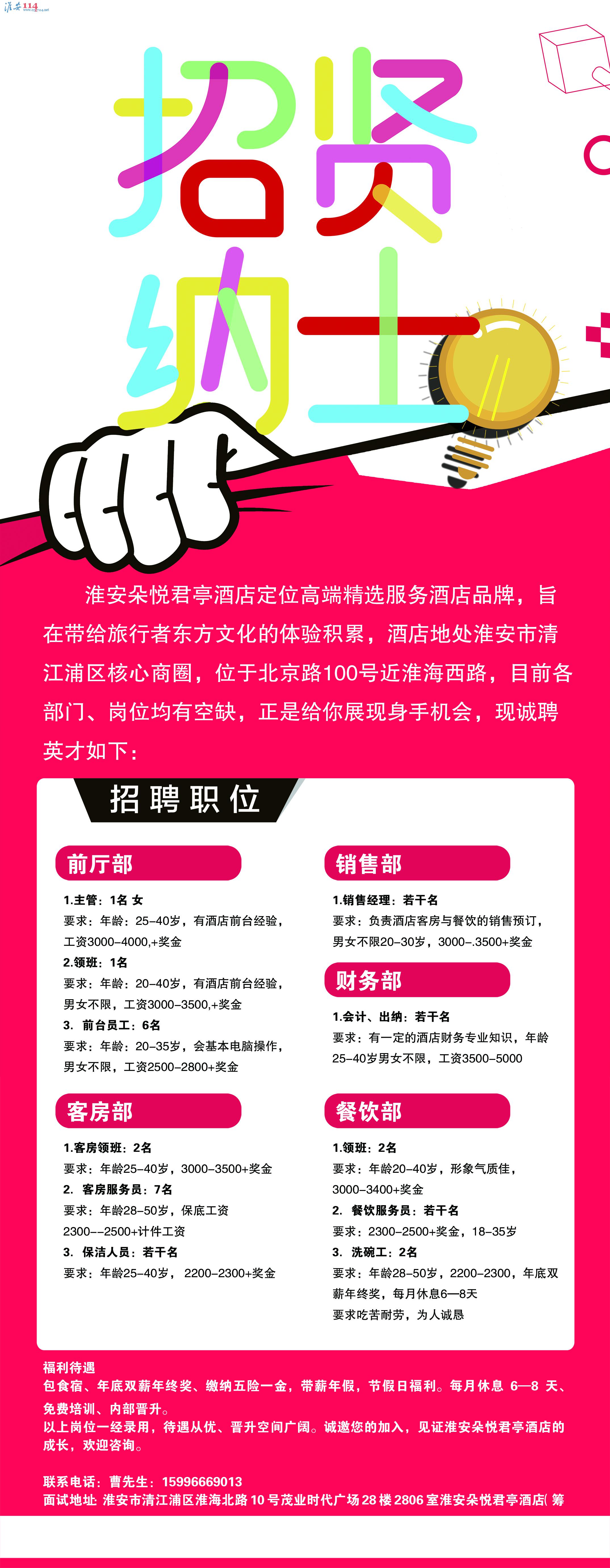 淮安朵悅君亭酒店招人啦。!