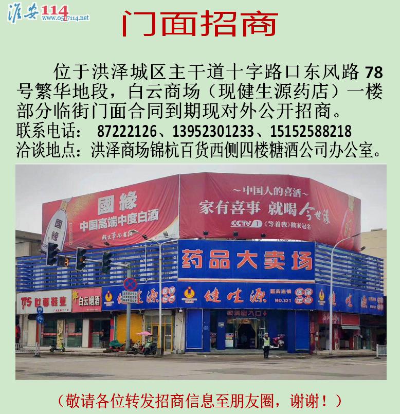 洪澤城區(qū)東風(fēng)路78號(hào)十字路商鋪合約期滿,現(xiàn)對(duì)外公開(kāi)招商