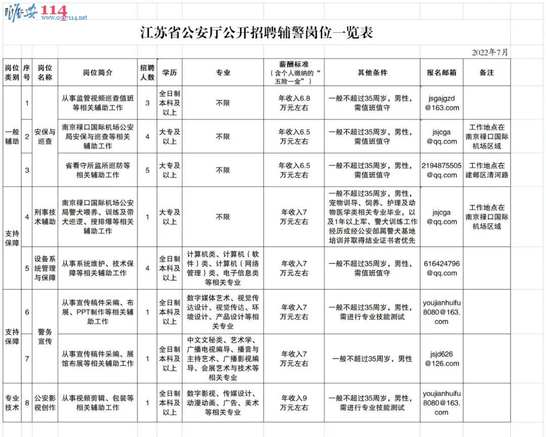 招聘崗位詳見《江蘇省公安廳公開招聘輔警、雇員崗位一覽表》。