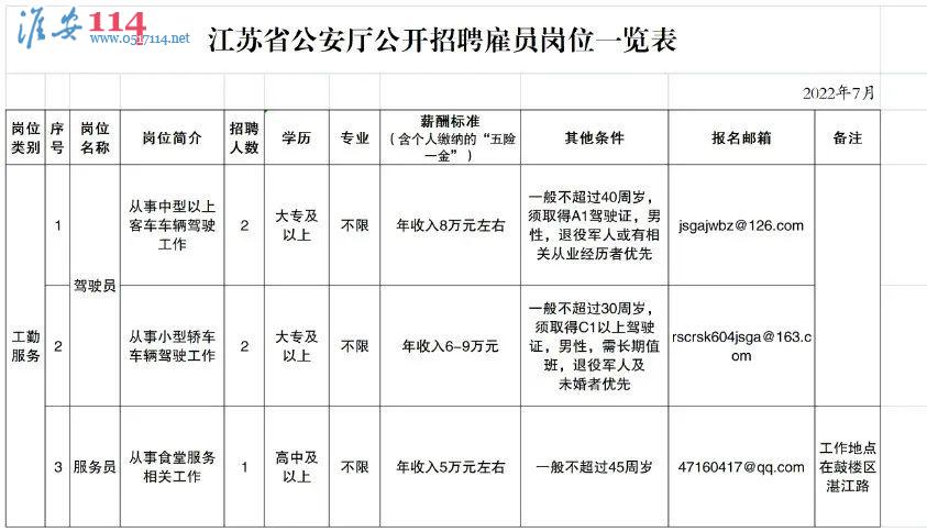 淮安百姓網(wǎng)關(guān)鍵詞:江蘇省公安廳公開招聘警務(wù)輔助人員和雇員公告