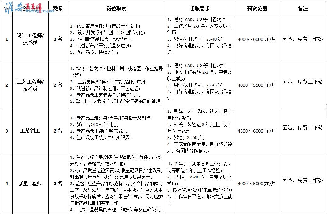 因公司組建初期,需要各類管理、技術(shù)、質(zhì)量等精英骨干,特向社會公開招聘若干人才,崗位如下: