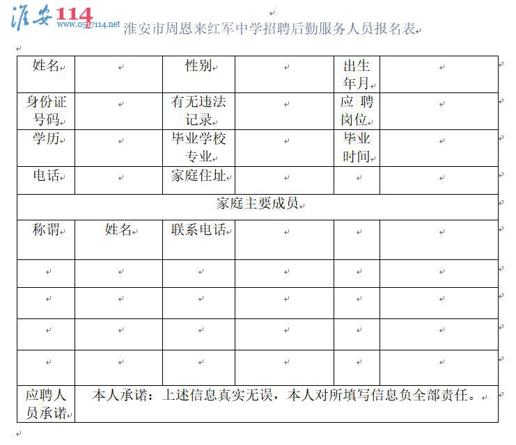 附件:淮安市周恩來紅軍中學(xué)招聘后勤服務(wù)人員報(bào)名表