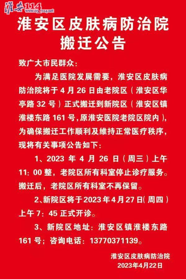 淮安區(qū)皮膚病防治院搬遷公告相關圖片信息