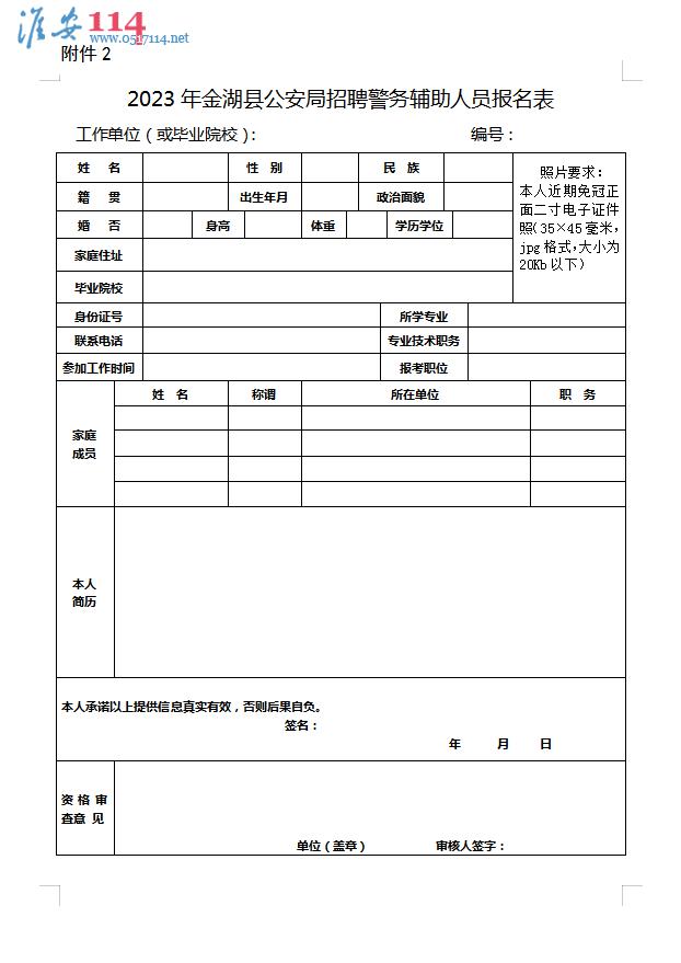 2.2023年金湖縣公安局招聘警務輔助人員報名表;