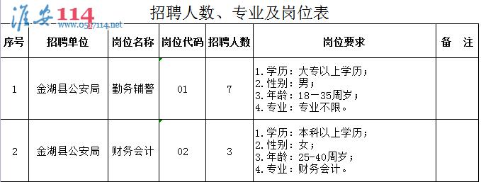 淮安百姓網關鍵詞:2023年金湖縣公安局招聘警務輔助人員公告